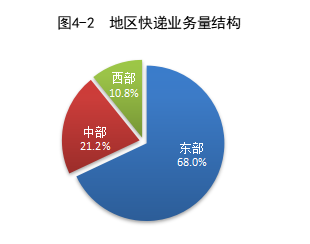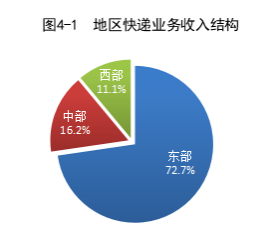 1-3月,东、中、西部地区快递业务收入比重别离为72.7%、16.2%和11.1%,快递业务量比重别离为68.0%、21.2%和10.8%。与前年同时比拟,东部地区快递业务收入比重下跌1.0个百分点,快递业务量比重下跌3.3个百分点;中部地区快递业务收入比重高涨0.6个百分点,快递业务量比重高涨1.7个百分点;西部地区快递业务收入比重高涨0.4个百分点,快递业务量比重高涨1.6个百分点。